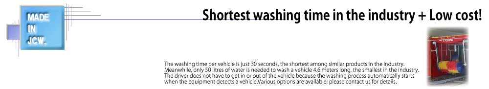 The washing time of our equipment is 30 seconds per unit and the water consumption is 50 litres per unit, among the lowest figures for similar products in the industry. Furthermore, the running cost and environmental impact are low. Various major improvements were made prior to the release of our long-selling AST-1, which has a sophisticated structure and features. It thoroughly yet rapidly washes vehicles thanks to our newly-developed brush unit and new control system.Also, molten zinc plating is used for the frame of the machine, and aluminum‐zinc alloy‐coated steel sheet is used for the outside plating, as a standard specification for long-term hard use. A variety of options are also available in response to specifications of users such as a card system, a coin system, a POS system, and a failure data logger.
