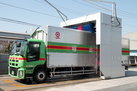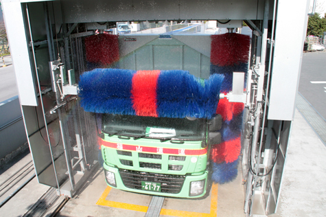 This is a washing machine to wash the whole circumference (the front, sides, and rear) of a vehicle with three units of brushes. The newly developed brushes and the new control system make it possible to fully wash the front and rear of a vehicle, not to mention the sides. A system unit is equipped with the machine as a standard specification to wash the tilted surfaces of the front and rear of a new-model vehicle. Washing can be performed through the whole process vehicle washing machine controller which controls washing time, volume of water, and washing spots. Also, molten zinc plating is used for the frame of the machine, and aluminum‐zinc alloy‐coated steel sheet is used for the outside plating, as a standard specification for long-term hard use. A variety of options are also available in response to specifications of users such as a card system, a coin system, a POS system, and a failure data logger.
