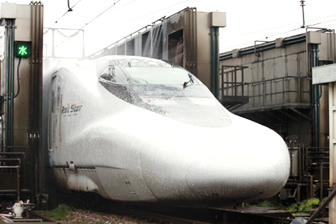 The beauty of the carriages of the Shinkansen is second to none in the world. The washing system(Train Wash Plant) for such carriages has been brought to realization through our long-term vision for technology development. The world's largest-scale washing system was supplied to West Japan Railway Company. This system contains various kinds of equipment such as reverse osmosis water treatment equipment and wash water recycling equipment, to say nothing of carriage washing equipment, all of which were designed and manufactured by us. It is considered the world's best railway washing system in light of all its aspects including safety, mechanical quality and control system, operating cost, and mechanical durability.