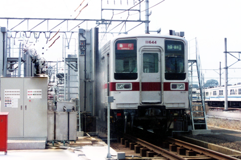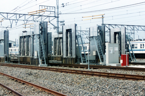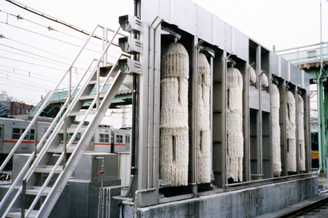 This is a fundamental washing system(Train Wash Plant) for railway carriages consolidating all the know-how accumulated since our foundation. It is a stationary type, and can be installed in a small footprint. Moreover, a carriage can be brought in from either direction for the washing process, thus the system can be installed at a place which was considered not possible in the past. The whole circumference of a carriage up to the shoulders, to say nothing of the sides, is fully washed. The new control system and special mechanism perform the washing by precisely correlating to the shape of a carriage without any need for manual washing.